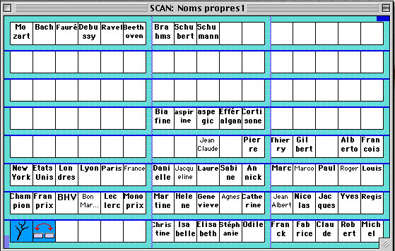 Dans le même ordre d'idée, j'ai un clavier "noms propres", qu'on atteint en cliquant sur le petit bonhomme bleu de la première ligne. J'y ai laissé toute une série de cases vierges à compléter par chacun selon ses besoins propres.