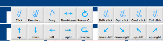 On the first row, from left to right : Click : lets you select a file or folder in the Finder on which the mouse cursor is ; or on a web page, click on a link (see chapter Internet) ; or in a text, change the text cursor’s place, etc… Double click : lets you open a file in the Finder or on the desktop by double clicking it ; in a text, double clicking a word shades it, so you can change the word by typing another one on top. Drag : if you put the mouse cursor on a file or folder, in the Finder, and then you type “Drag”, you can move this file or folder to another folder, and then type “Drag” again, which “Drops” it in that other folder : this operation is called “Drag and Drop”, very useful to change place files and folders in the Finder. With that “Drag” key, you can also change place a window on the screen, or change its size, with the same method. In a text, you can shade a part, then copy it to paste it somewhere else. Slow mouse : when typing this key, the mouse cursor moves in same direction as previously, but slowly. You can define slow rate in the Mouse section of SwitchXS preferences. Rotate cursor : when typing this key, you see a ray turning clockwise, having origin the mouse cursor. Switching a first time makes the ray turn slower, switching a second time makes the ray stop turning and the mouse cursor move along the ray, switching a third time, makes the cursor move slower in the same direction, switching a fourth time, makes the cursor stop. It is the fastest way to bring mouse cursor from a point to another on the screen. Shift Click : typing that key is the same as typing first “Shift”, then “Click” and again “Shift”. It lets you select several files in the Finder or a part of text. You select a file in the Finder, when you Shift-Click another file of the same list, all files between both files are selected. Same for text : put the text cursor in a place, Shift-Click another place, all the text between both places is selected. Option Click : when a whole list of files is selected in the Finder, Option-Clicking one of those files, makes that no files are selected, expect the one on which you clicked. But the main application concerns a very long text in which you know approximately where you want to go. Option-Clicking the right rail makes the blue target place itself where you click, it is much faster than typing “Page Down”. Command Click : when several files are selected in a list of the Finder, you can make the file not selected, keeping the other ones selected, by Command-Clicking it. With that key, you can also select desired files, without selecting those between. Control Click : Control clicking on an icon of the dock, on a file in the Finder or on certain parts of a web page, makes a local menu appear, then with the up and down arrows, you can select a task which is done when typing Return. On the second row, from left to right : The first four keys are mouse movements in the four directions : up, down, left and right. When selecting one of those keys, the mouse cursor moves in the selected direction, at the speed chosen in the Mouse section of SwitchXS Preferences, switching a first time, makes the cursor go slower (determine slow speed in SwitchXS preferences), switching again, stops cursor. Reverse : when the mouse cursor goes too far, using that key enables you to go backwards, in the same direction, with slow speed. The last four keys are diagonal mouse movements. Once more, it starts rapidly, then after a switch, at slow speed, and stops when switching a second time. There is one more mouse action done by the last key, third row: “Move scan panel window”. When you type it, you see an arrow turning in clockwise, at the first switch, the arrow turns in slow speed, at the second switch, the panel moves in the arrow’s direction, at the third switch, the panel goes on moving in same direction but in slow speed, and at fourth switch, panel stops. This is more convenient than ticking the “SmartTransparency” case in SwitchXS preferences, then moving the panel window by “Drag and Drop”, and ticking again the “SmartTransparency” case in SwitchXS preferences. |